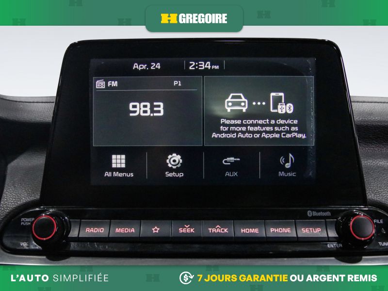 • Radio: AM/FM w/UVO Intelligence -inc: 8" display audio, Android Auto, Apple CarPlay, Bluetooth, steering wheel audio controls, 4.2" LCD supervision cluster, wireless cell charger and satellite radio