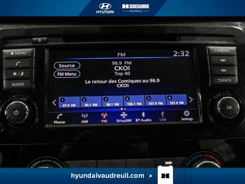 • Radio: AM/FM/CD Audio System w/4 Speakers -inc: auxiliary audio input jack, 7" colour display w/multi-touch, USB connection port for iPod interface and other compatible devices, Bluetooth hands-free phone system w/streaming audio and hands-free text messaging assistant, SiriusXM satellite radio, NissanConnect featuring Apple CarPlay, Android Auto and Siri Eyes Free