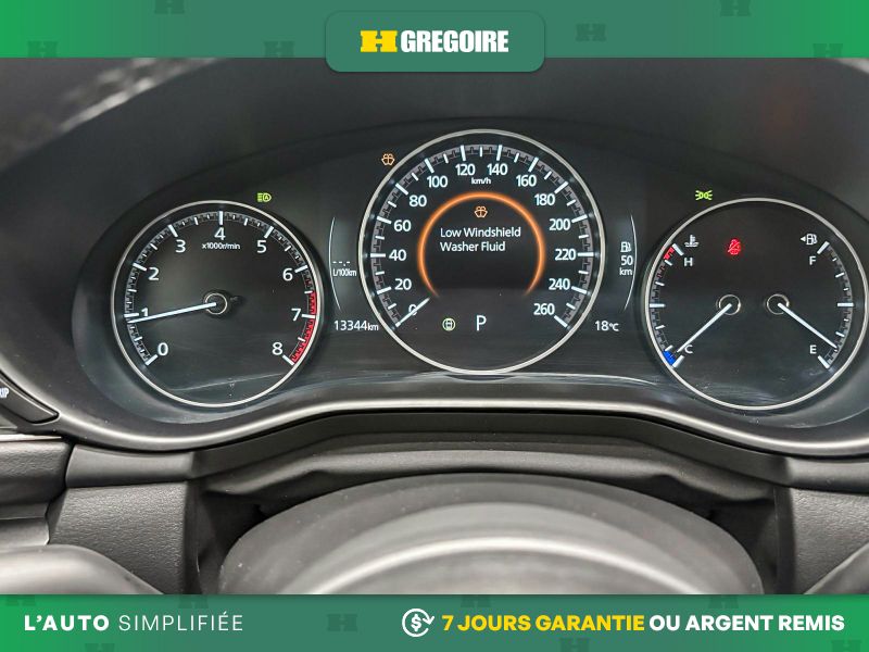 • Services de véhicule connecté Mazda -comprend : accès offert par abonnement d'essai de 2 ans à partir de la date de mise en circulation du véhicule; un abonnement payant est requis à l'expiration de la période d'essai, l'application MyMazda (sur téléphone intelligent compatible), un système électrique fonctionnel (y compris la batterie), une couverture sans fil et un signal satellite GPS sont requis, les services, la connectivité et les fonctionnalités peuvent varier en fonction des conditions ainsi que des restrictions géographiques et techniques, consultez le site mazda.ca pour obtenir tous les détails, les services pourraient inclure : fonctions à distance [démarrage et arrêt du véhicule à distance, verrouillage et déverrouillage à distance, activation à distance des feux de détresse]; état du véhicule [alerte de l'état du véhicule]; services de navigation [localisation du véhicule, envoyer à la voiture (cette caractéristique est offerte uniquement sur les versions équipées de la préparation pour système de navigation (requiert carte SD avec données de navigation) ou du système de navigation)]; services connectés du véhicule [bilan de santé du véhicule, mises à jour en ligne, notifications poussées, notification de défaillance] et assistance routière Mazda