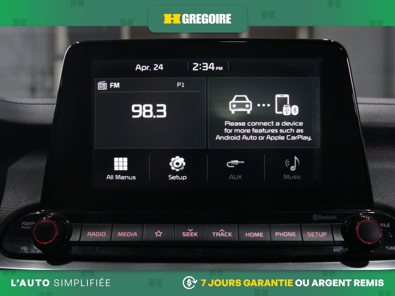 Radio : AM/FM avec système de télématique UVO Intelligence -comprend : chaîne audio harman/kardon de catégorie supérieure, système de navigation intégré avec écran de 8 po et écran audio, Android Auto, Apple CarPlay, système Bluetooth, commandes audio au volant, tableau de bord avec écran ACL de 4,2 po, chargeur de téléphone sans fil et radio par satellite