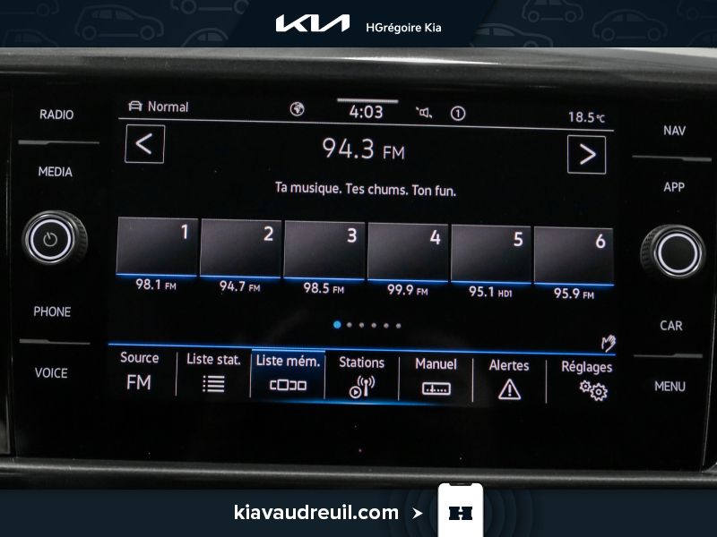 Radio avec recherche et balayage, montre, volume asservi à la vitesse, commandes au volant et système de radiocommunication de données