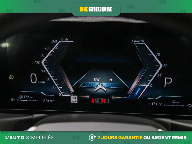 Instruments -comprend : indicateur de vitesse, odomètre, température du liquide de refroidissement du moteur, tachymètre, niveau de charge de la batterie de traction, consommation et récupération d’énergie, compteur journalier et ordinateur de voyage