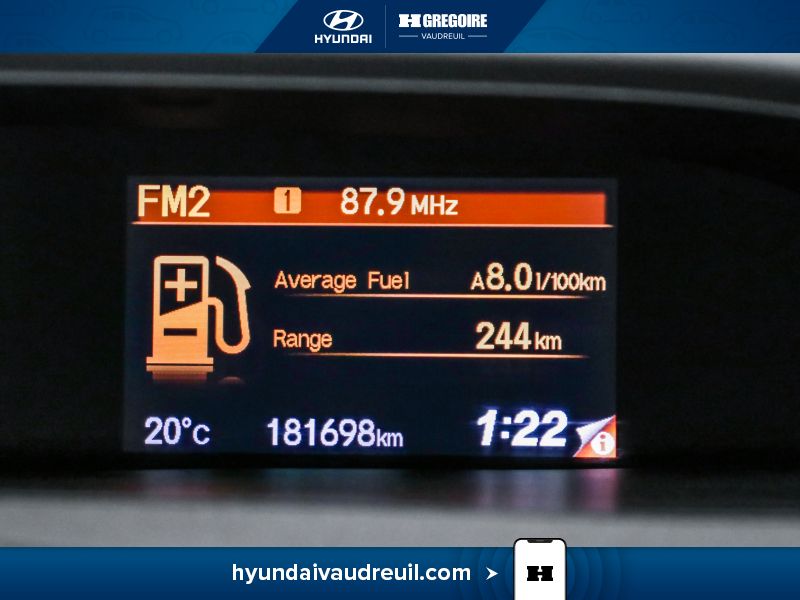• Affichage multiple intelligent (i-MID) - comprenant : écran de bienvenue, économie moyenne de carburant, niveau de carburant, indicateur de consommation de carburant numérique, compteur kilométrique numérique, vitesse moyenne, temps écoulé, (2) compteurs de voyage numériques, température extérieure, horloge, information la fonction mains libres Bluetooth HandsFreeLink, réglages personnalisables des verrous de portières, éclairage intérieur, langue, couleur d'écran, fond d'écran